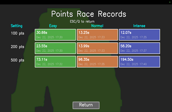 - Points Race consists of obtaining a specific amount of points as quick as possible.