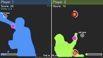 Turn your body into the controller in this fast-paced, Fruit-Ninja-inspired action game! Using real-time computer vision, slash targets out of the air, and duck and leap to avoid bombs. It can be played in single-player or 1v1 split-screen.